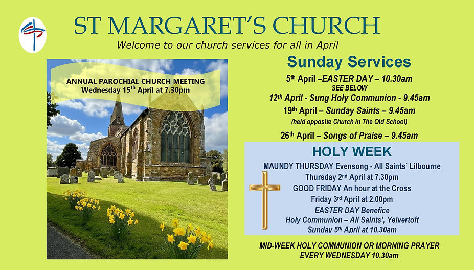 ^The hosting of the 5th Sunday service rotates between Crick, Lilbourne and Yelvertoft. For details go to our What's On page